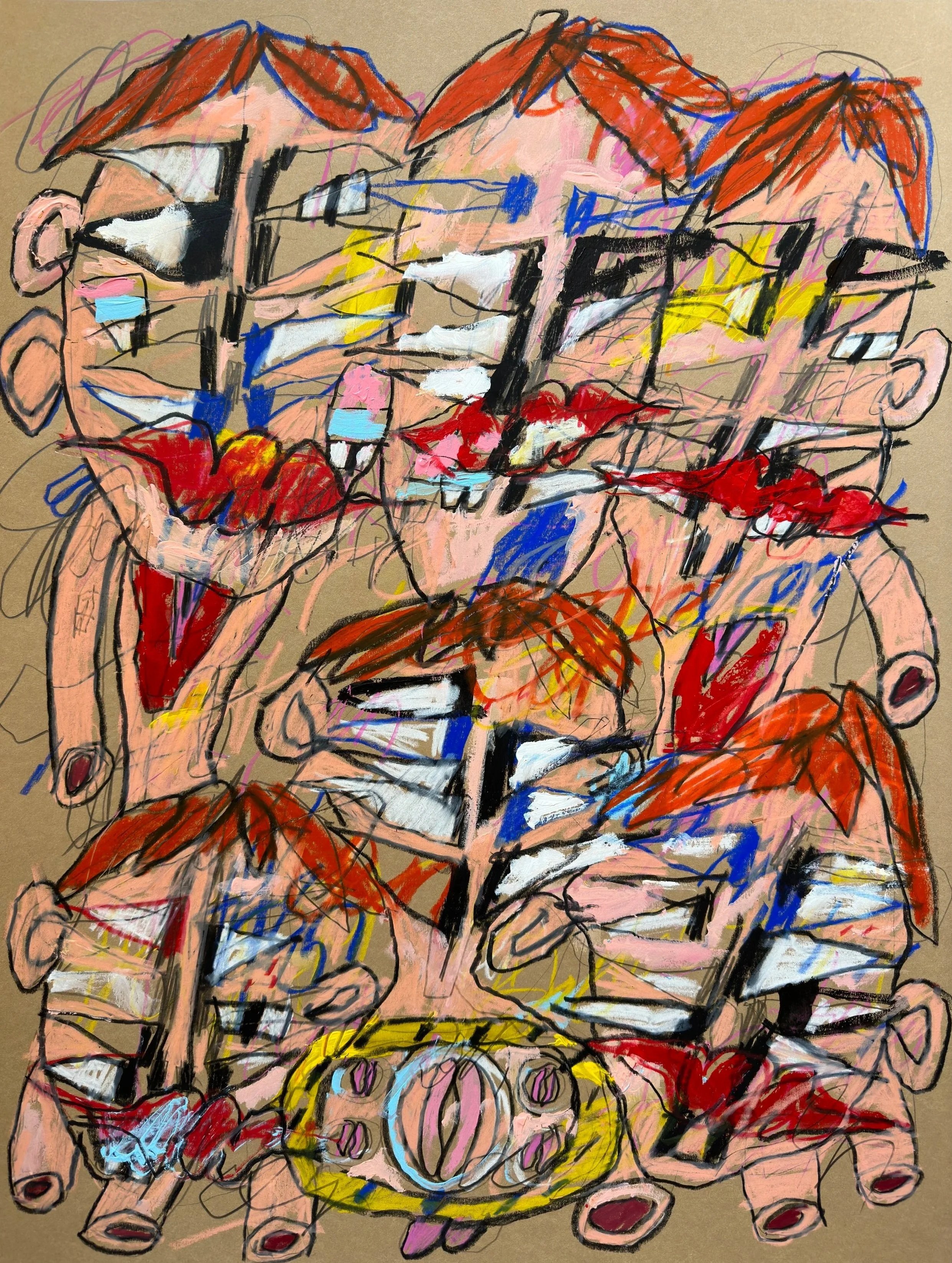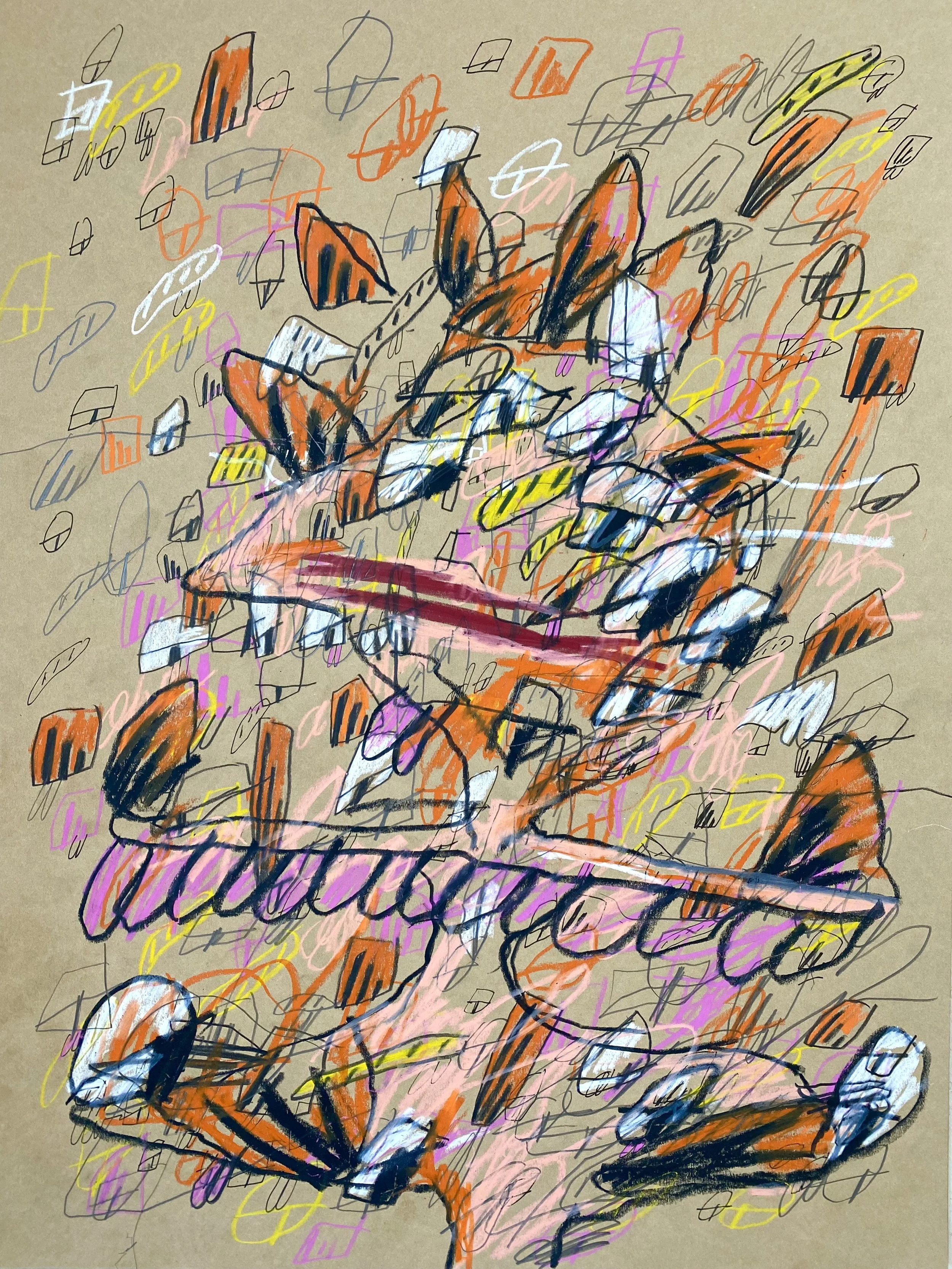 Visual art and music are connected for me—I go back and forth every day between those worlds. They both give me a chance to express emotional noise, to resonate with materials. I try to impart my spirit on materials that I come into contact with, whether they be musical notes, guitar strings, colored pencils, or paint. Visual art gives me a chance to illustrate the totems of my interior landscape—like I can show people what my thought patterns look like, sort of like a schematic or a scan. My dreams are shaped the same way as my paintings look.