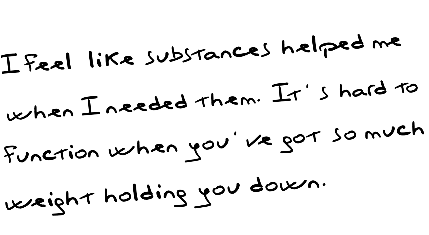 I feel like substances helped me when I needed them. It’s hard to function when you’ve got so much weight holding you down. They really eased part of my life, but they never healed me. Looking back, maybe there’s some things I would have changed.